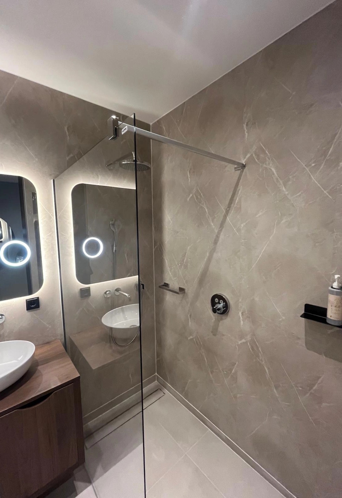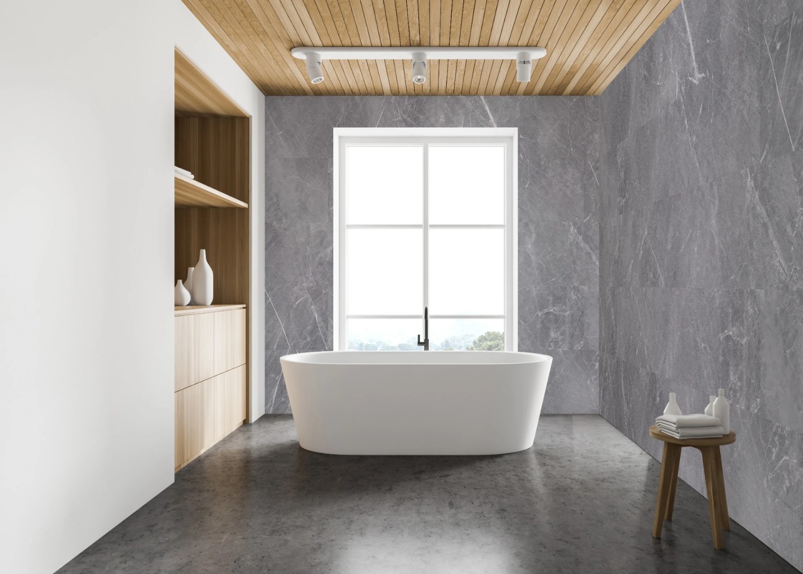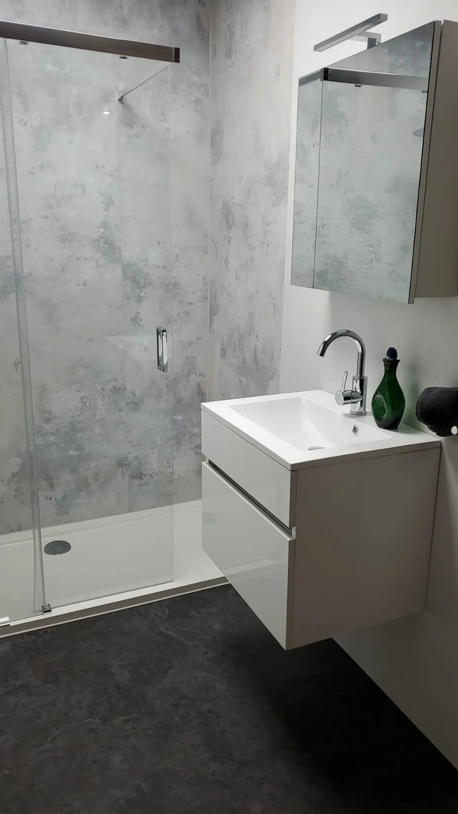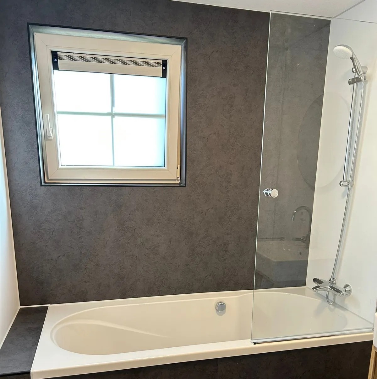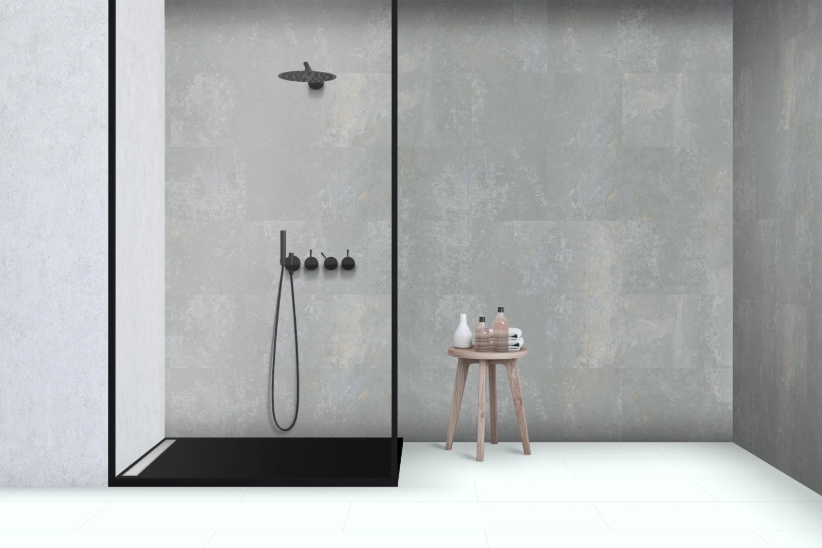 WANNEX SPC Plattensystem bietet eine schnelle, fugenlose und wasserdichte Wand- und Bodenlösung. vielseitig im ganzen Haus einsetzbar, auch im Duschbereich. Dank ihrer geringen Dicke (4,5 mm) sind sie eine kostengünstige Lösung für Renovierungsprojekte. Die Installation erfordert keinen Fliesenleger.